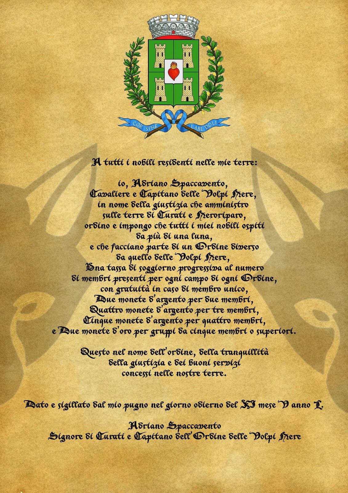 Signore di Curati e Capitano dell’Ordine delle Volpi Nere