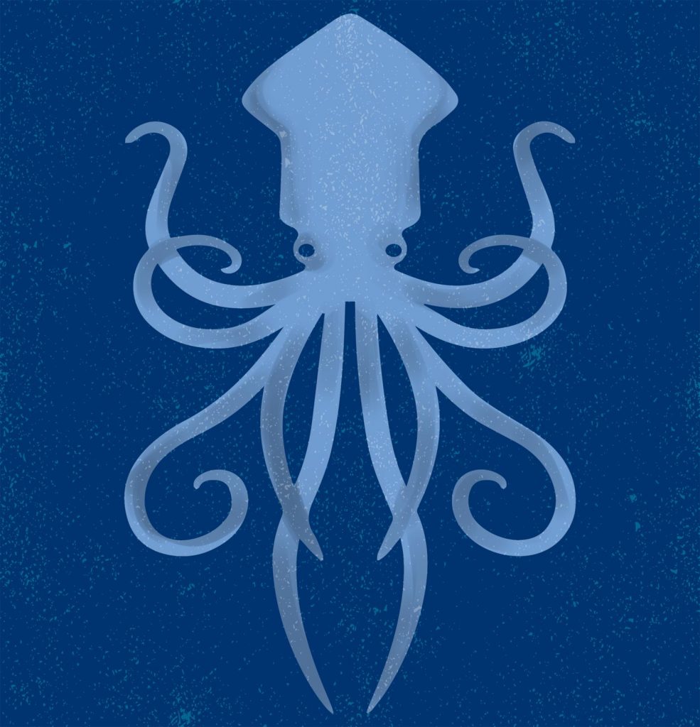 Kraken emergente dai flutti su campo azzurro, con i tentacoli.